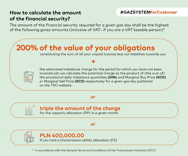 - The financial security must be maintained for at least 3 months after the period for which the capacity (PP) or the transmission ability (PZ) has been allocated.