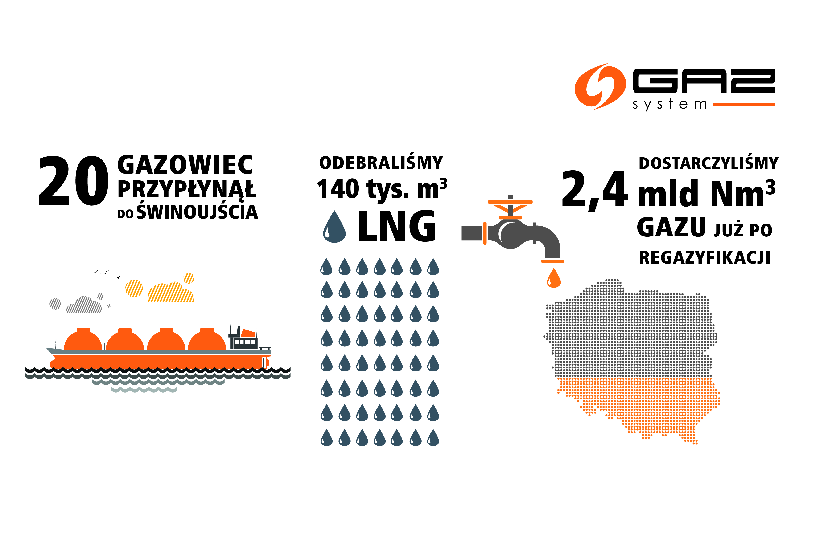 Tym razem gazowcem typu „Moss” dostarczono około 138 tys. m3 skroplonego gazu ziemnego. Po regazyfikacji, czyli procesie polegającym na zmianie stanu skupienia surowca ze skroplonego na lotny, do krajowego systemu przesyłowego trafi ponad 82 mln Nm3 gazu. Łącznie ze wszystkich dostaw komercyjnych (pierwsze dwie były przeznaczone w części na schłodzenie i rozruch instalacji) – ponad 2 mld Nm3.