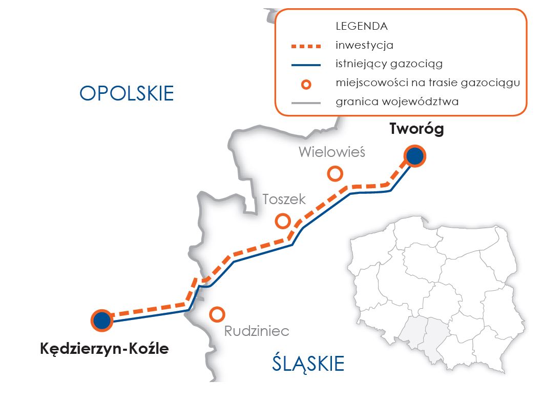 W czerwcu 2017 r. GAZ-SYSTEM uzyskał niezbędne pozwolenia na budowę dla gazociągu Tworóg – Kędzierzyn-Koźle, która rozpocznie się na początku 2018 r. Zakończenie prac planowane jest w 2020 r.