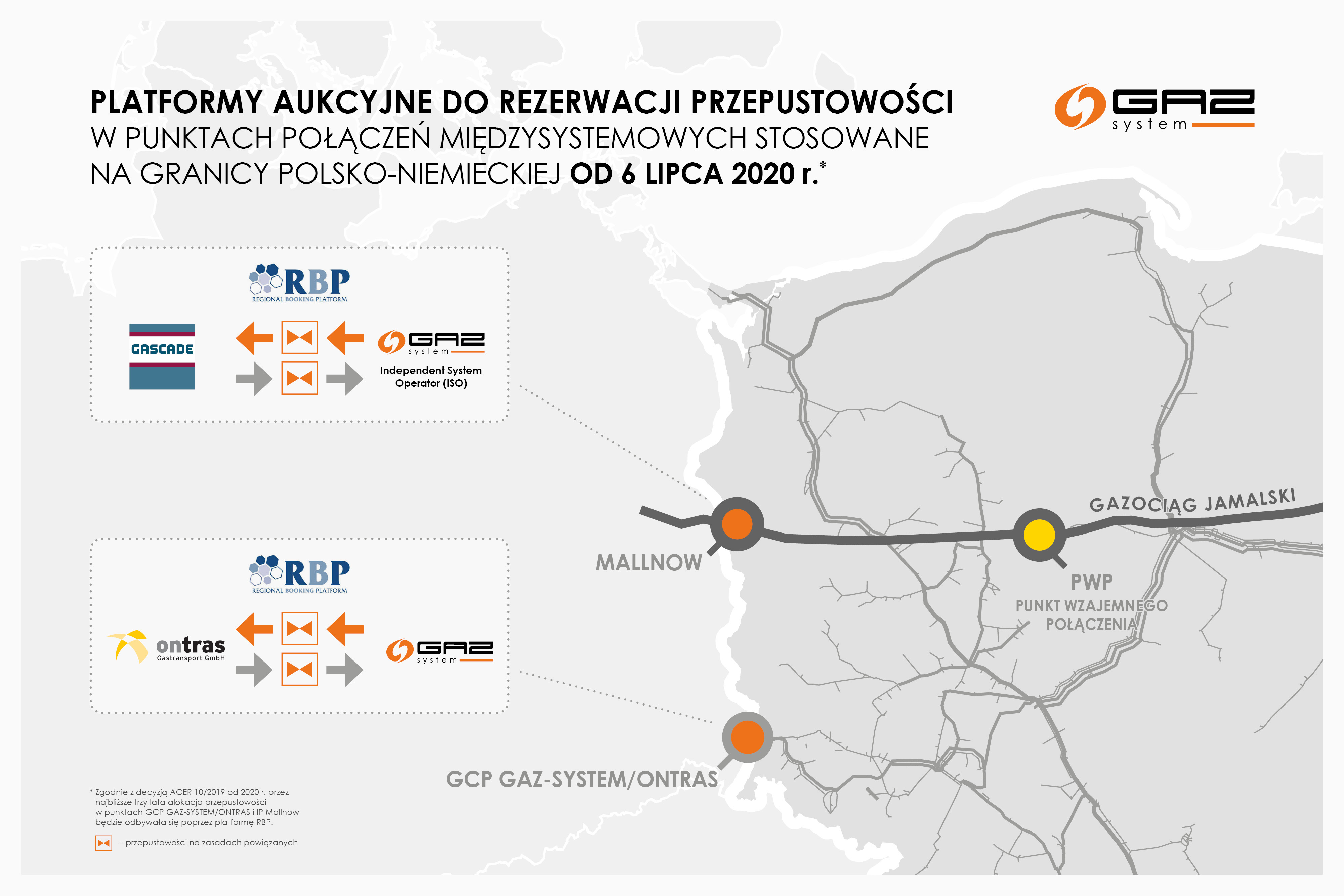 Zgodnie z decyzją ACER z dnia 6 sierpnia 2019 r. dotyczącą wyboru platformy do rezerwacji przepustowości na granicy Polska-Niemcy, przez najbliższe 3 lata alokacja przepustowości dla punktów Mallnow i GCP GAZ-SYSTEM/ONTRAS będzie realizowana poprzez platformę RBP ('Regional Booking Platform').