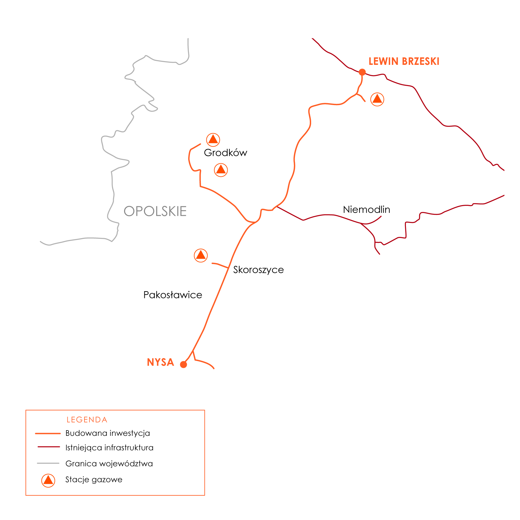 24 lipca 2023 r. Wojewoda Opolski wydał decyzję znak IN.I.747.7.2023.AZ o ustaleniu lokalizacji inwestycji pn.: „Budowa gazociągu DN500, MOP 8,4MPa relacji Lewin Brzeski – Nysa wraz z odgałęzieniami do Stacji Gazowych – Lewin Brzeski; Skoroszyce; Grodków ul. Żeromskiego; Grodków ul. Warszawska.”